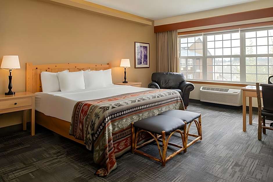 Boasting free WiFi, this king room features a 42" flat-screen TV. Select king rooms feature a signature leather couch or over-sized chair and ottoman in a separate sitting area. Pillow-top mattresses provide additional comfort in this room. A refrigerator, microwave, and coffee maker are included. A hairdryer is provided in the private bathroom.